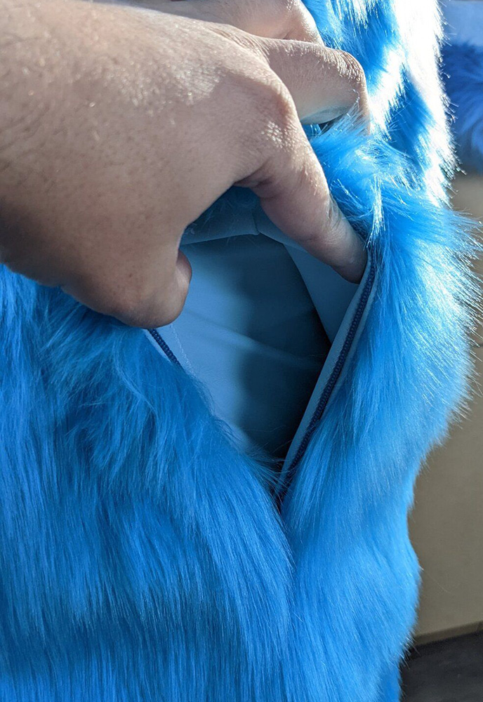 I can also construct plush suits that are like giant stuffed animals that's fully lined on the inside and made to where you can add and remove polyfill.